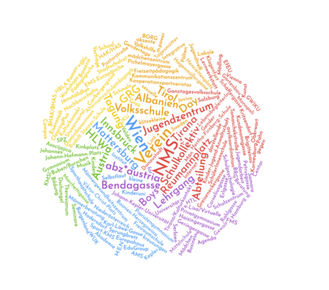 Ganztagesvolksschule, Wien 3 - GRG Hagenmüllergasse, Wien 3 - GRG Kundmanngasse, Wien 3 - Volksschule Petrusgasse, Wien 3 - KMS Schäffergasse, Wien 4 - Theresianum, Wien 4 - KMS Viktor-Christ-Platz, Wien 5 - Gymnasium Marchettigasse, Wien 6 - Gymnasium Rahlgasse, Wien 6 - VS Corneliusgasse, Wien 6 - WUK ClearingPlus, Wien 7 - Piaristengymnasium, Wien 8 - Schulkollektiv, Wien 9 - SchülerInnenschule, Wien 9 - BG Pichelmayergasse, Wien 10 - FH Campus, Wien 10 - Jugendzentrum Paho, Wien 10 - BG Erlgasse, Wien 12 - Volksschule Karl-Löwe-Gasse, Wien 12 - w@lz, Wien 12 - WUK Monopoli, Wien 12 - WUK m.power, Wien 12 - HBLA für Gartenbau, Wien 13 - Privatgymnasium der Dominikanerinnen, Wien 13 - KMSI Kinkplatz, Wien 14 - BORG Henriettenplatz, Wien 15 - Gymnasium Schmelz, Wien 15 - GWIKU Haizingergasse, Wien 18 - Integrative Lernwerkstatt Brigittenau, Wien 20 - KMS Greiseneckergasse, Wien 20 - Sport-KMS Pastorstraße, Wien 21 - VS Tomaschekstraße, Wien 21 - HTL Donaustadt, Wien 22 - FMS Bendagasse, Wien 23 - KMS Bendagasse, Wien 23 - KMS Carlbergergasse, Wien 23 - Jugendzentrum "Jugendtreff", Wien 23 - Rudolf-Steiner-Schule, Wien 23 - Vienna Business School, Mödling - EMS-Europäische Mittelschule, Oberwart - Boys Day Wien - Boys Day Burgenland - SPZ Korneuburg
